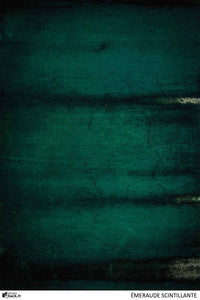 "ÉMERAUDE SCINTILLANTE" est un fond photo effet béton brut vert, de fines paillettes d'or sont dispersées sur le fond