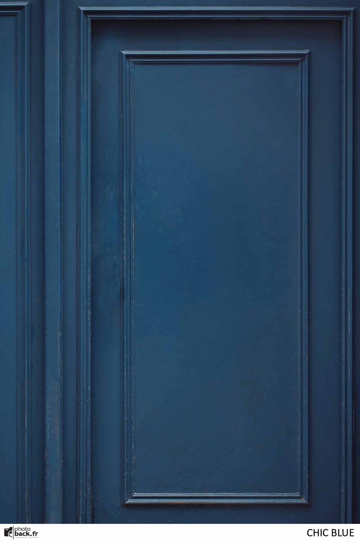 "CHIC BLUE" est un fond photo effet porte d'un bleu profond et élégant, parfait pour sublimer vos créations.